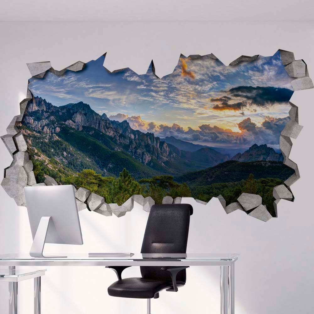 Mountains 3d Wallpaper - Broken Wall Decal - Wall Sticker - Wall Decal - 3d wall decals - 3d printed - 3d wall art - 3d art