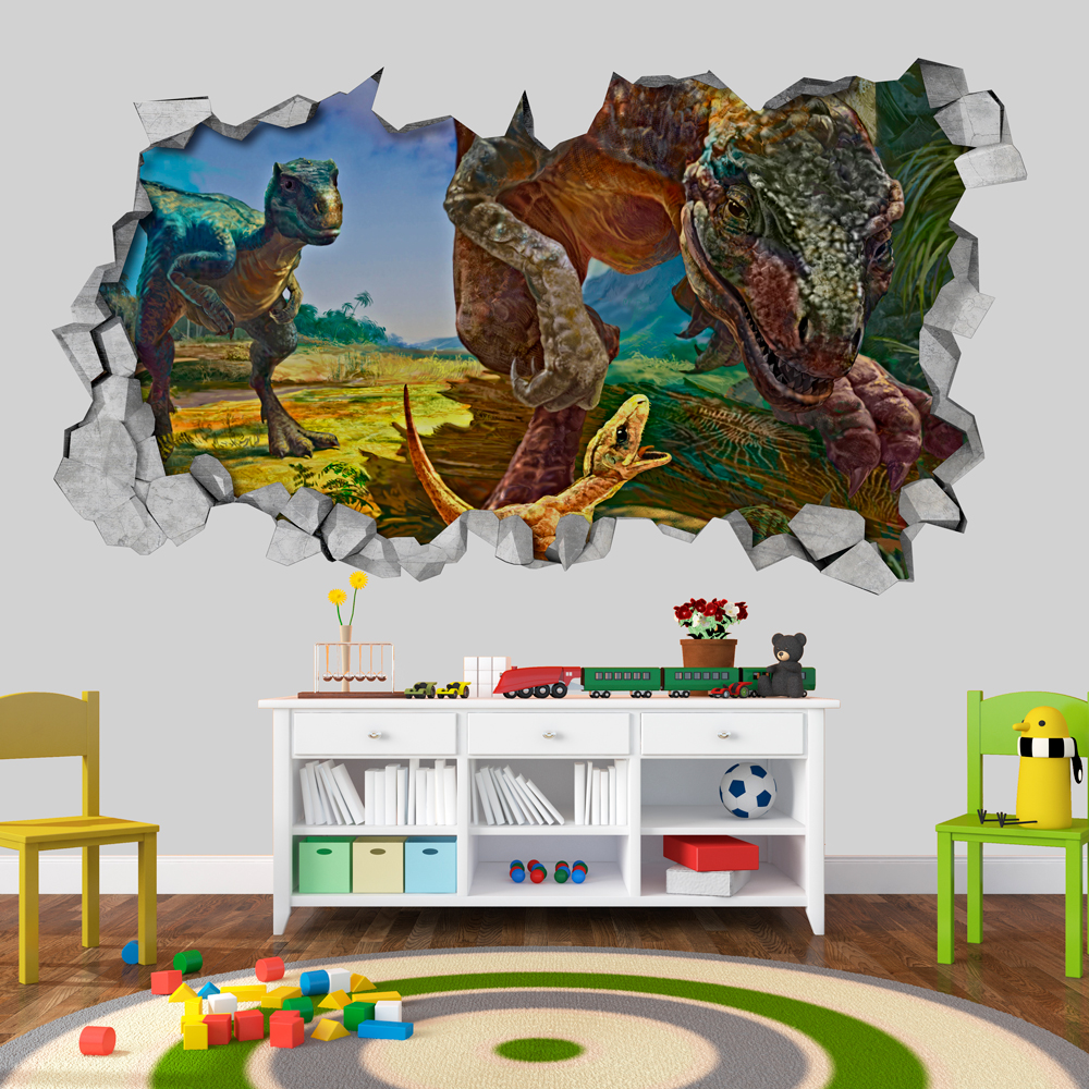 Velociraptor Dinosaur Family 3D Wallpaper - 3d Wallpaper - 3d wall decals - 3d printed - 3d art - Wall Sticker - Wall Decal