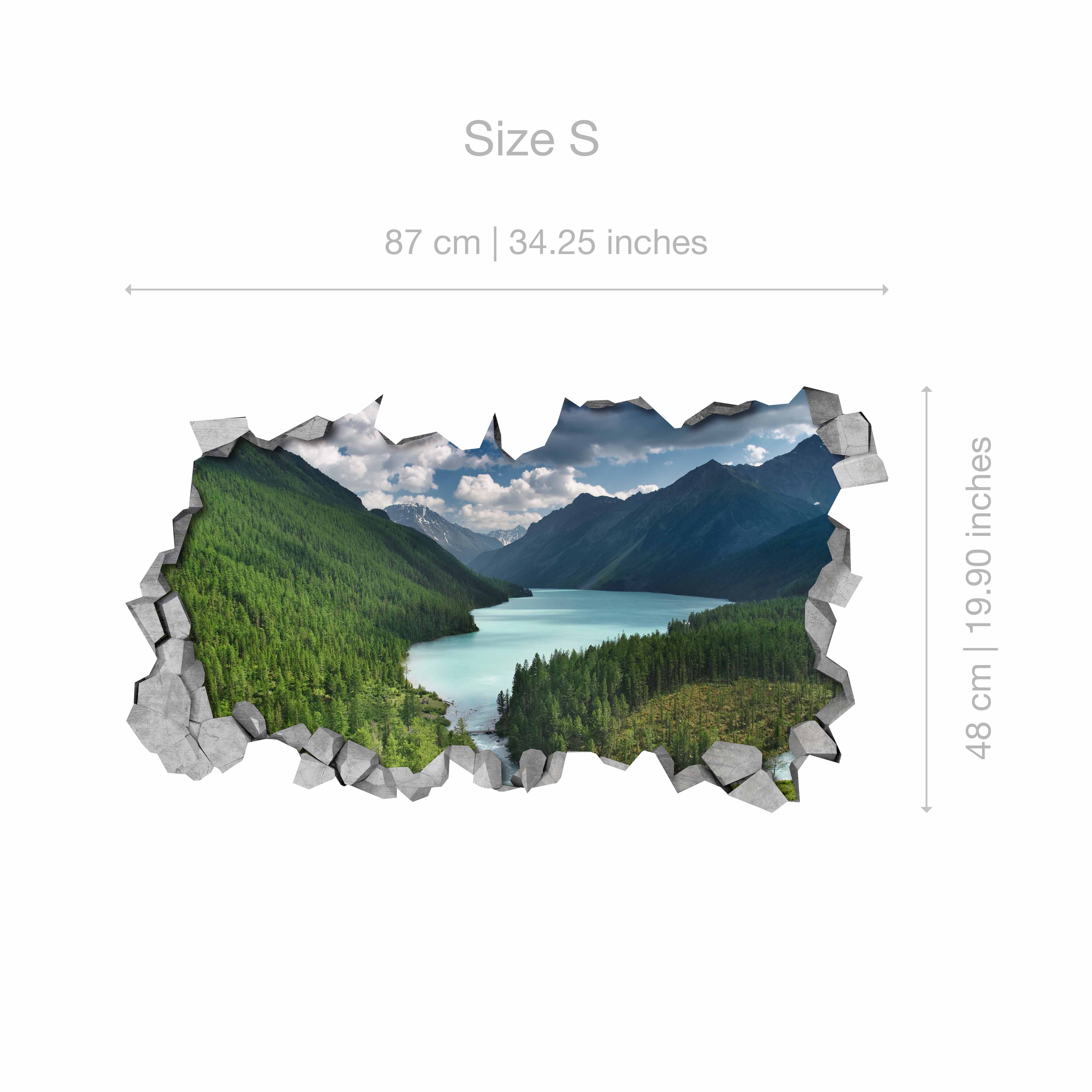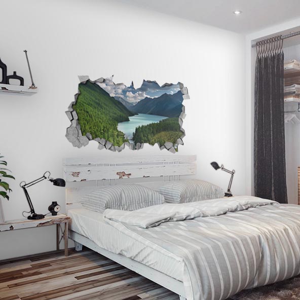 River and Mountains - Broken Wall - 3d Wall Stickers - 3d Wall Art - Wall Sticker - Wall Decal - 3d Wallpaper - 3d wall decals