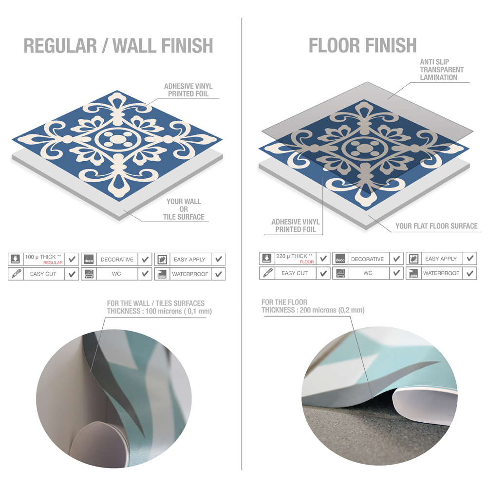 7 x 7 inches | 17.78 x 17.78 cm each tile sticker