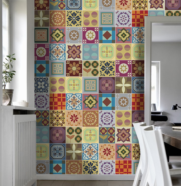 Tile Decals, Patchwork, Tile Decal, Kitchen, Tile Stickers, Tile Sticker for Kitchen Backsplash, Bathroom Tiles, PACK OF 49