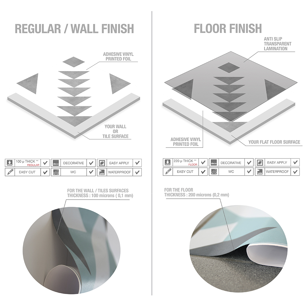 Made of 100% Quality German vinyl and covered with a special protective layer that prevents scratches and damages to the decal (in Floor Graphics option).