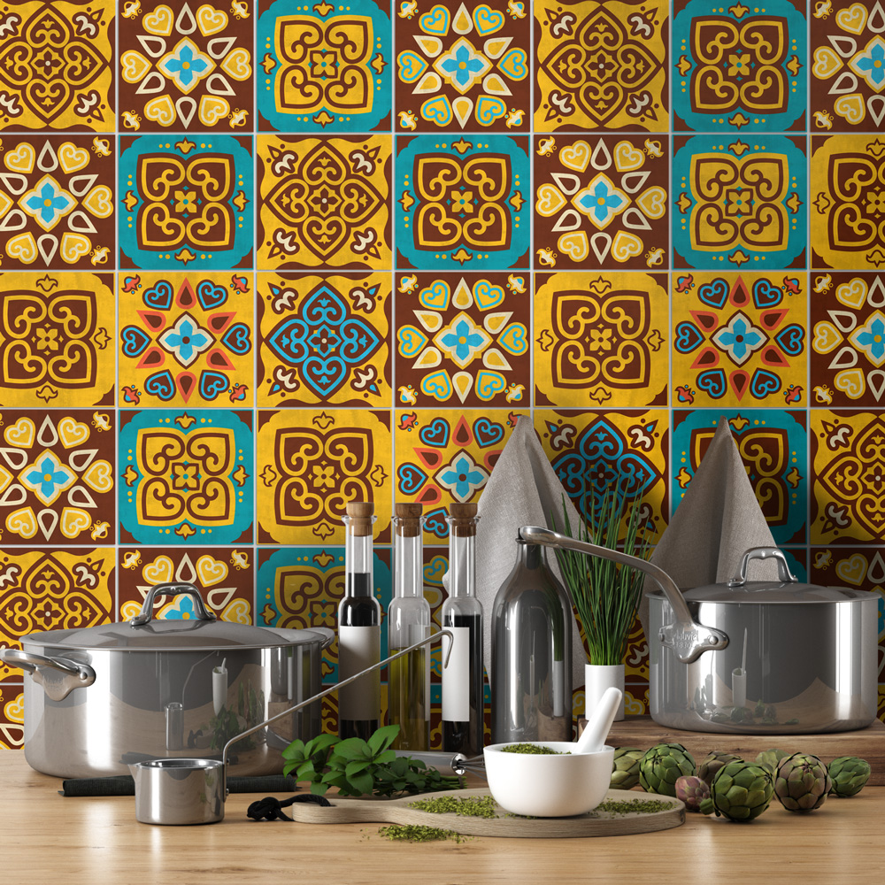 Buenos Aires Tile Stickers, Talavera Tile, Suitable for Wall and Floor, Waterproof, All Sizes, Modern Decor, Art Print, PACK 24