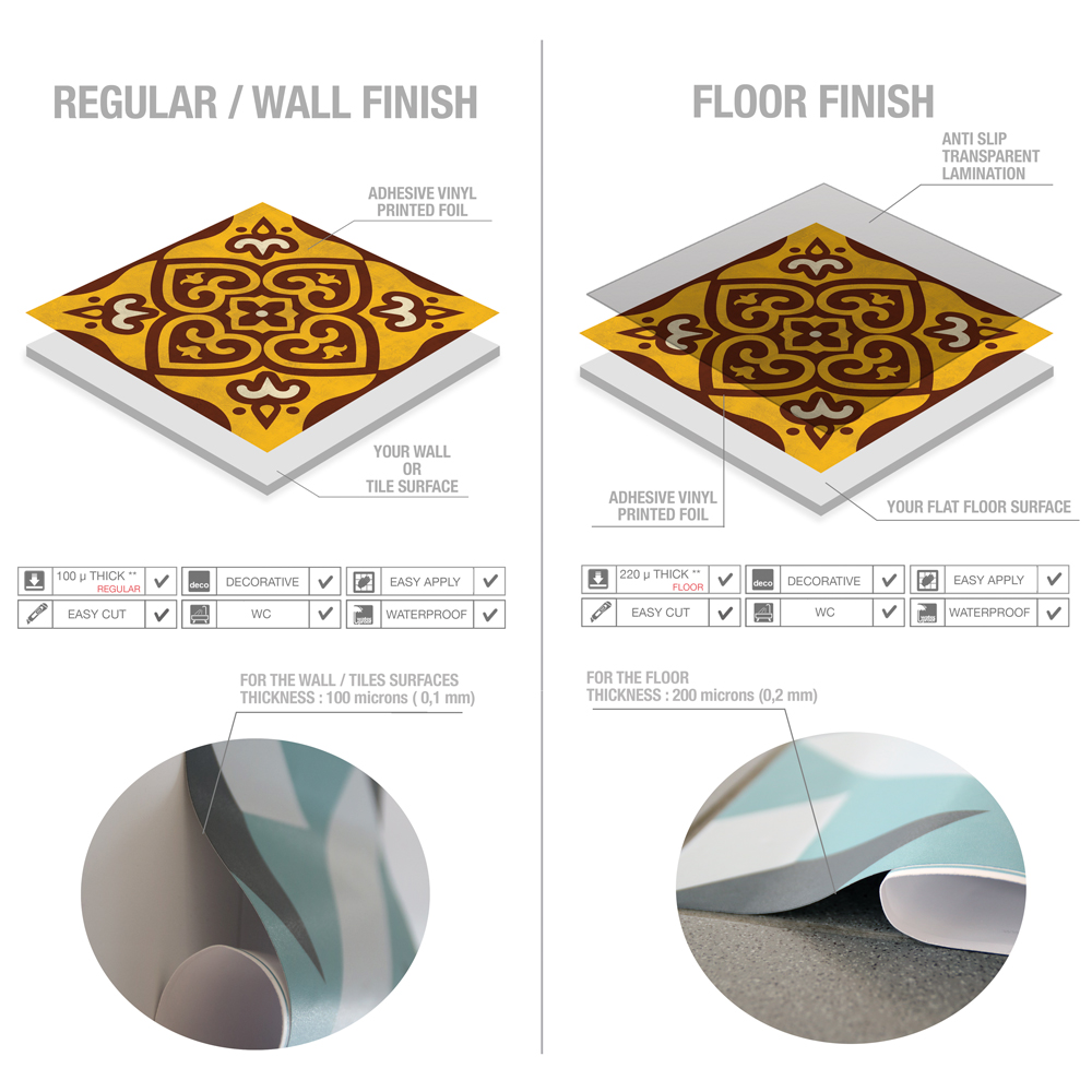 7 x 7 inches | 17.78 x 17.78 cm each tile sticker