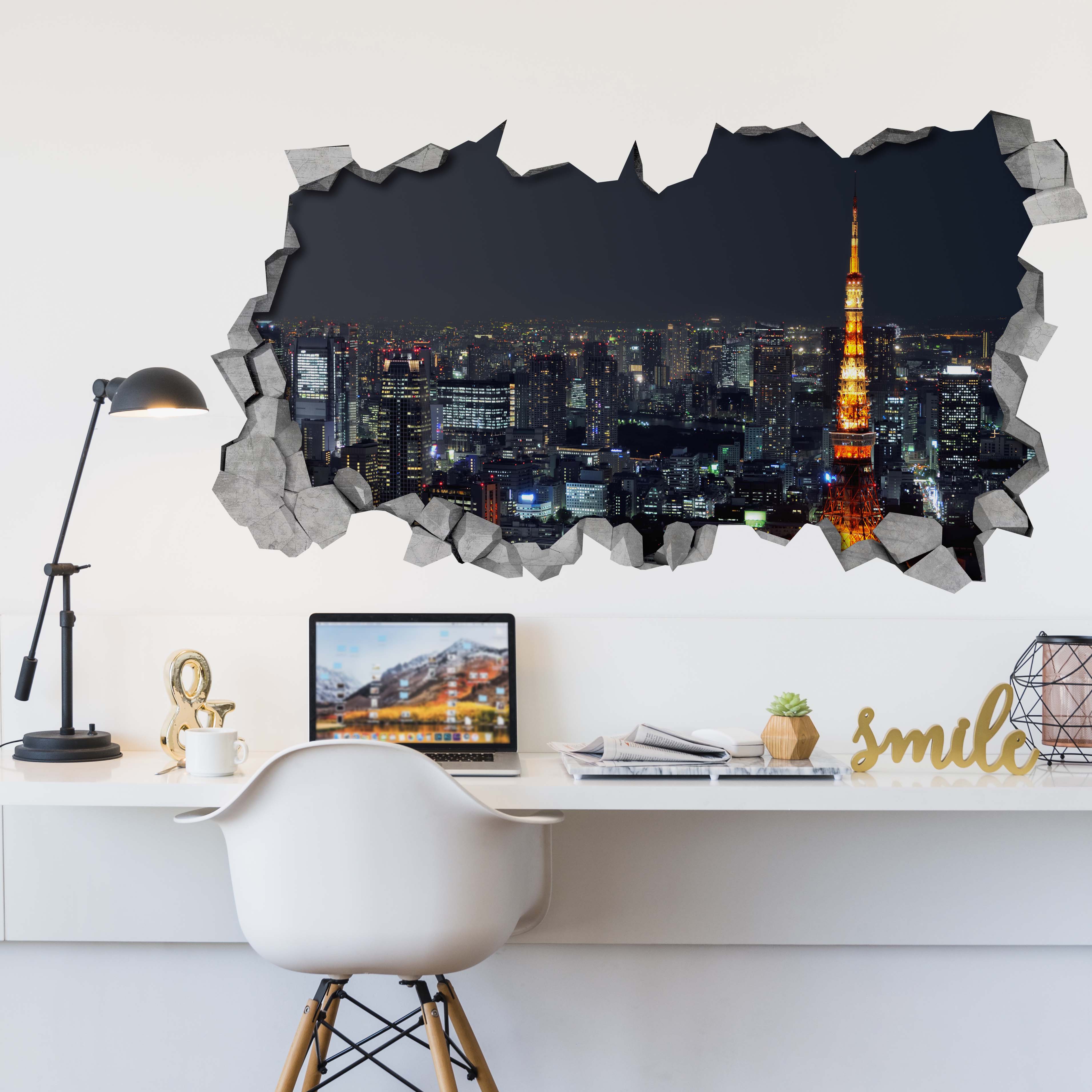 Tokyo - 3D Wallpaper - 3d Wall Art - Broken Wall - 3d Wall Stickers - Wall Sticker - Wall Decal - 3d Wallpaper - 3d wall decals
