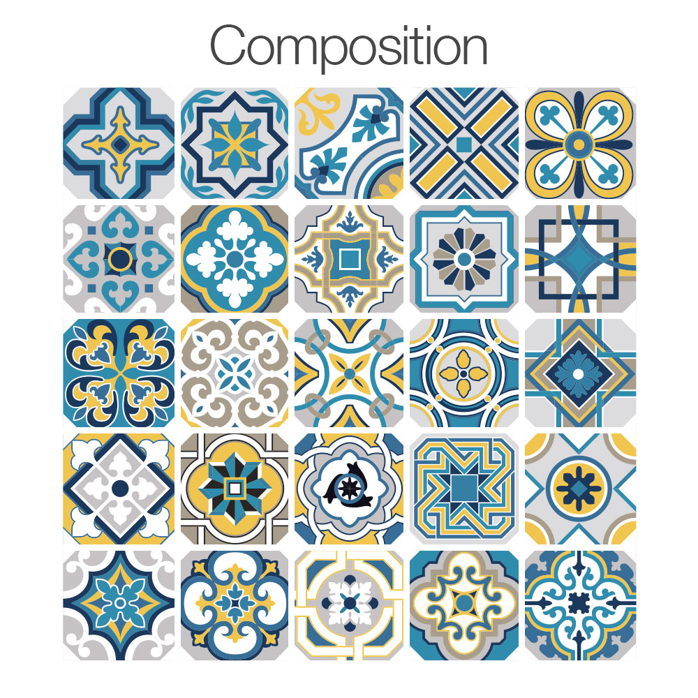 Colorful Tiles - Wall Tiles - Floor Tiles - Tile Decals - Flooring - Tile Stickers - Vinyl floor - bathroom - kitchen - PACK 25