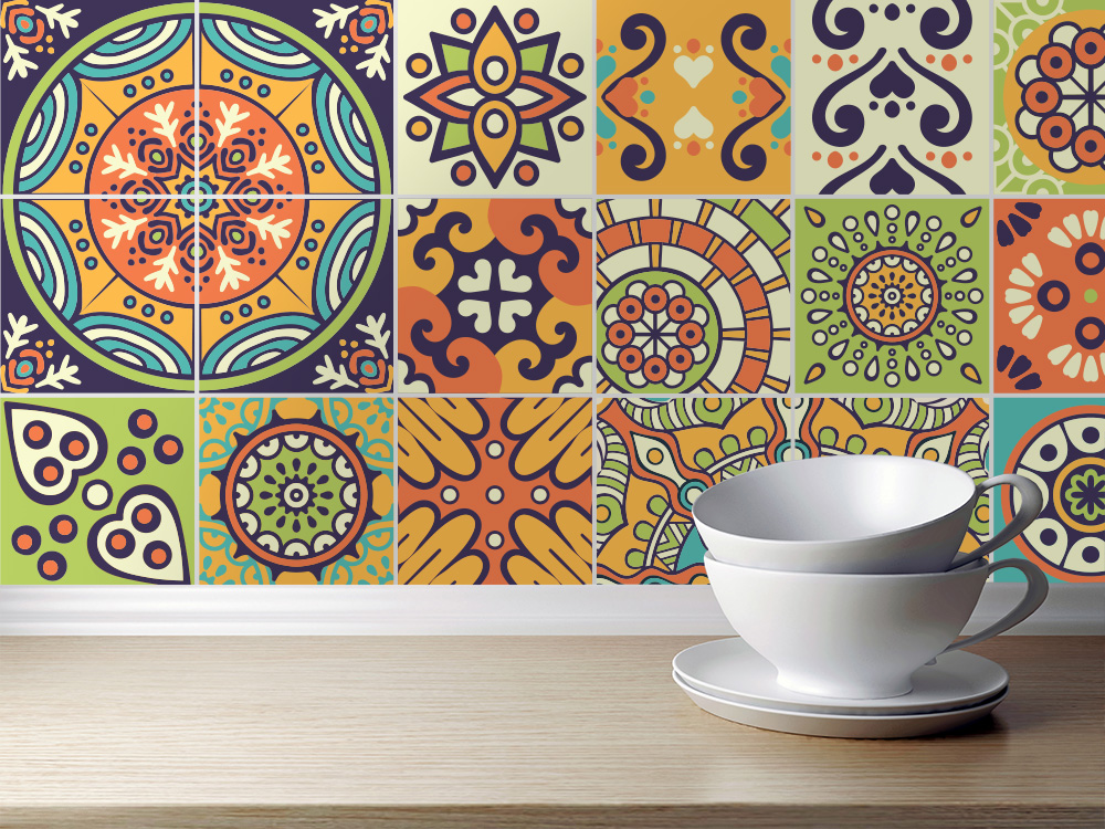 Chichen Itza Tile Stickers, Maya, Talavera, Suitable for Wall and Floor, Waterproof, All Sizes, Autumn Collection 2018, PACK 24