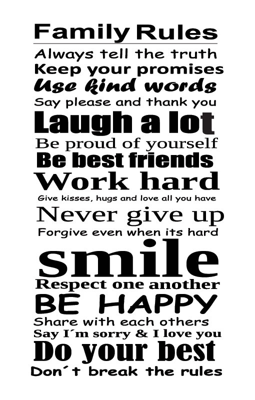 Wall Art Typography Family Rules Sticker Home Decor