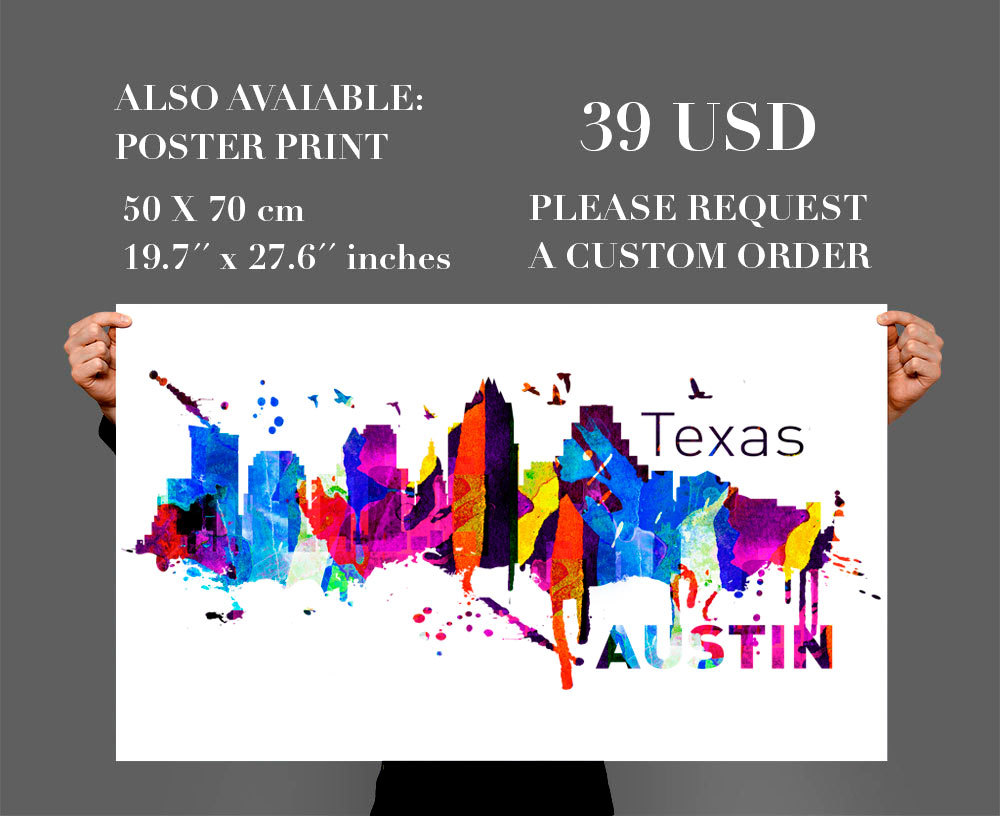 Austin Texas Skyline Art Print Watercolor Sticker