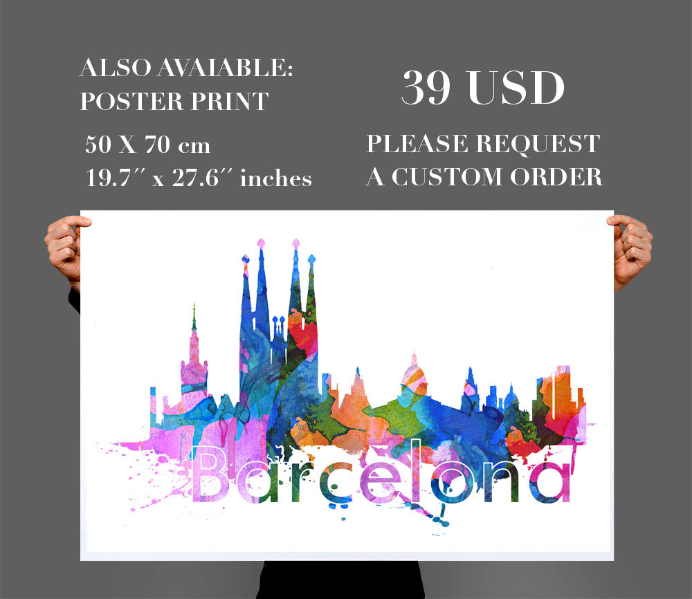 Barcelona City Skyline Watercolor Wall Art Print