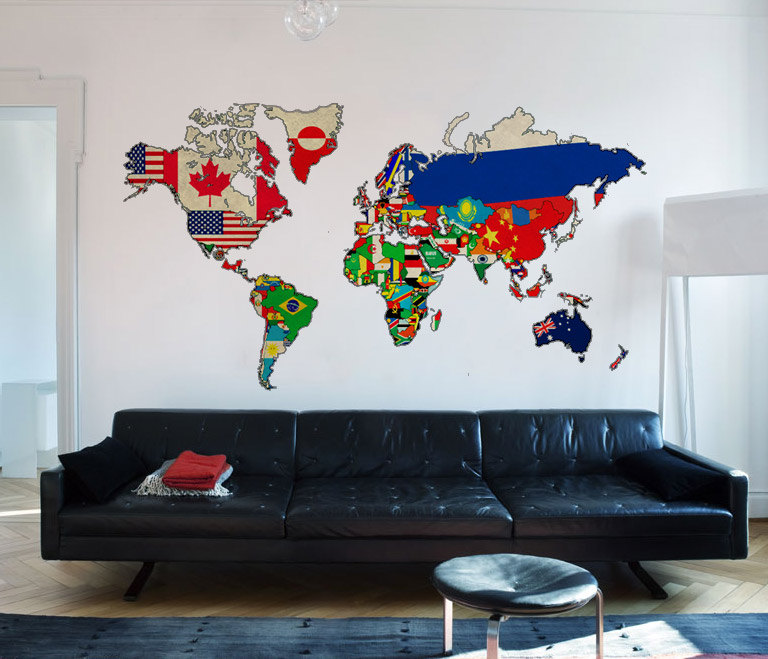 Vintage Flags World Map Wall Print Art