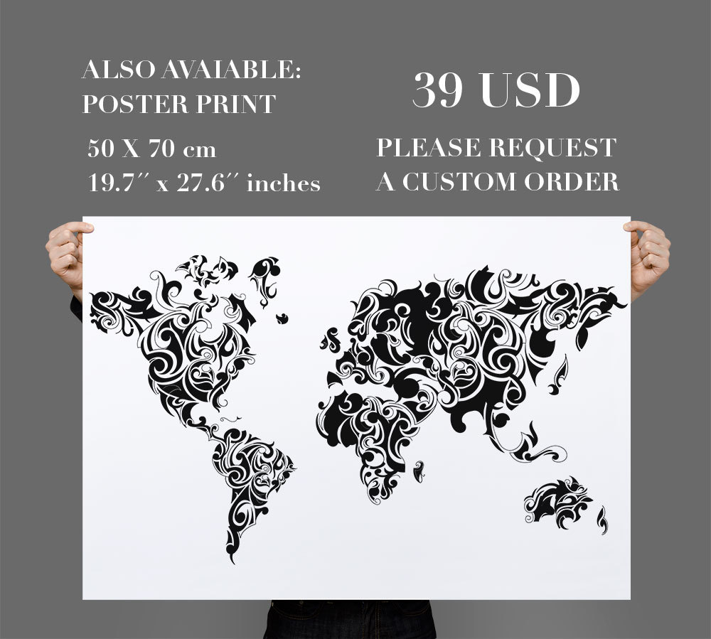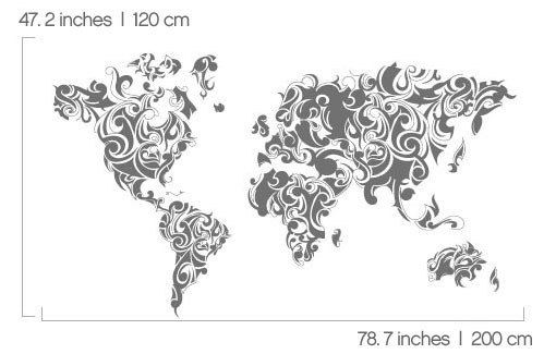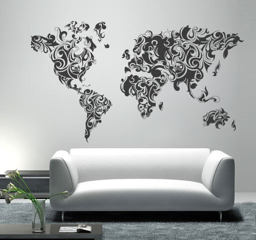 World Map Tribal Floral Vinyl Home Decor